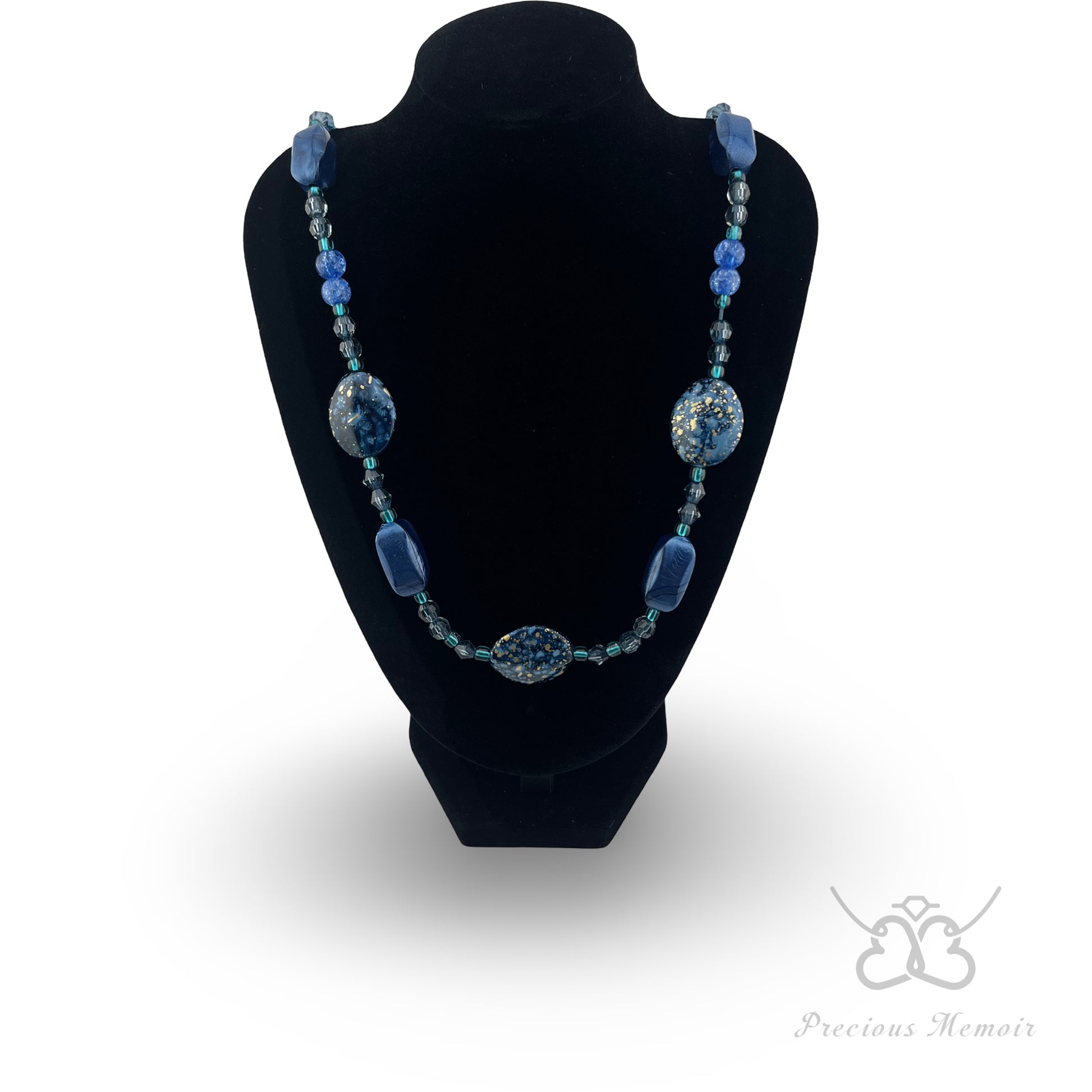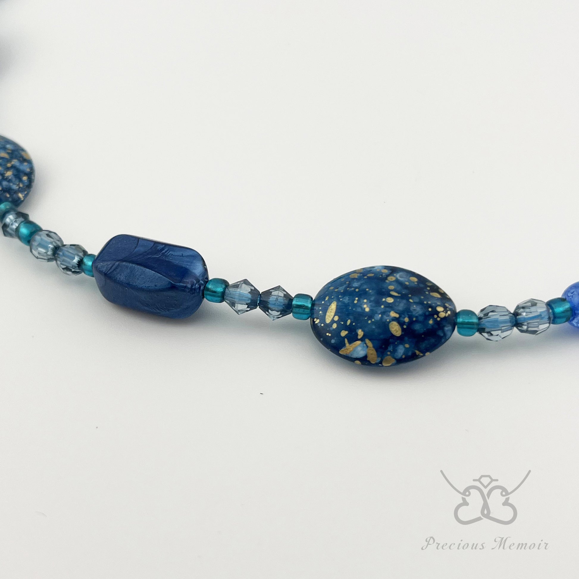Blue Bead Necklace w/ Gold Speck & Swirl Gemstone Design